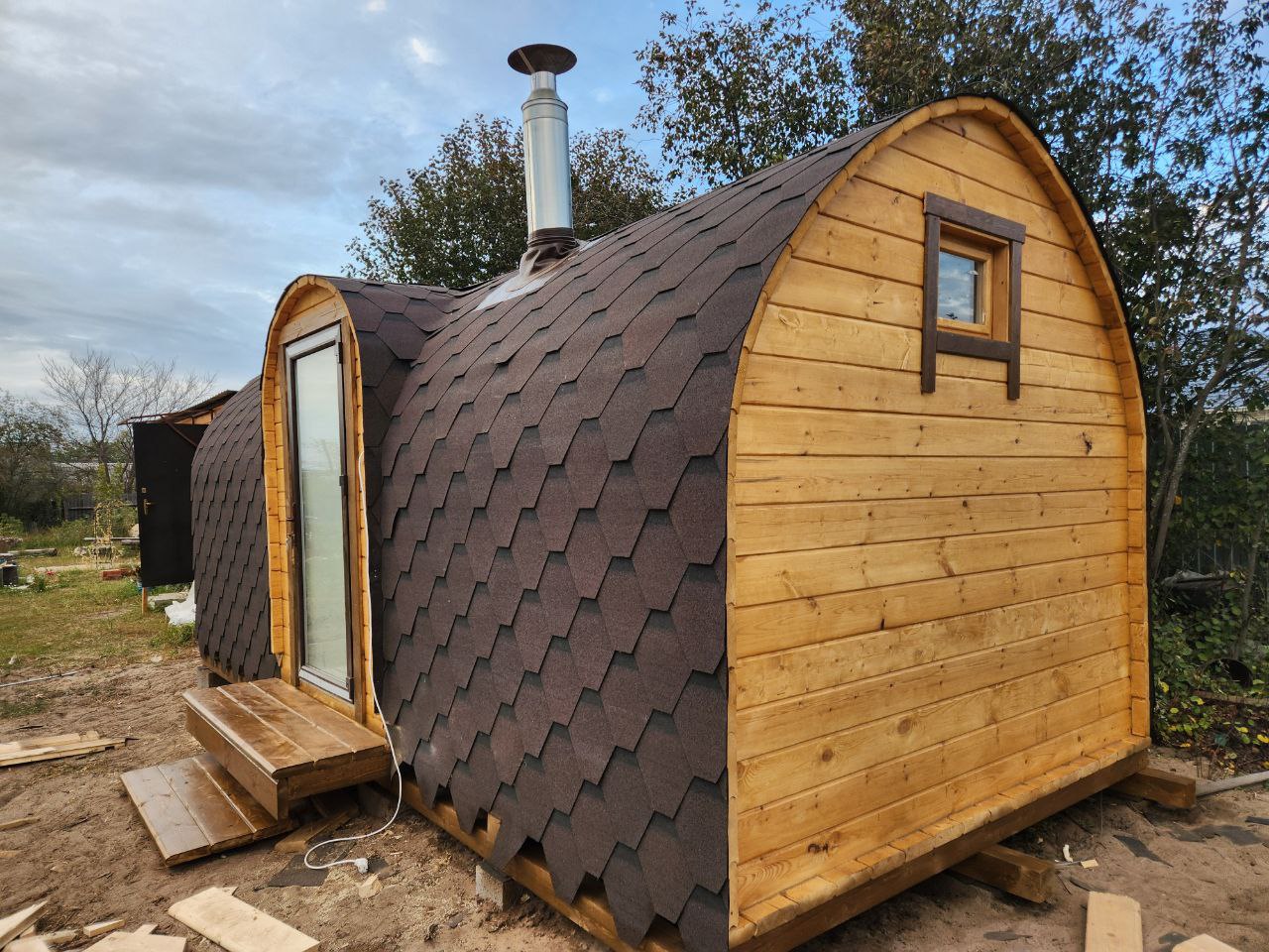 - Теплосберегающая конструкция: Баня-Викинг отличается усиленной теплоизоляцией, что позволяет поддерживать высокую температуру внутри даже в самые холодные дни.